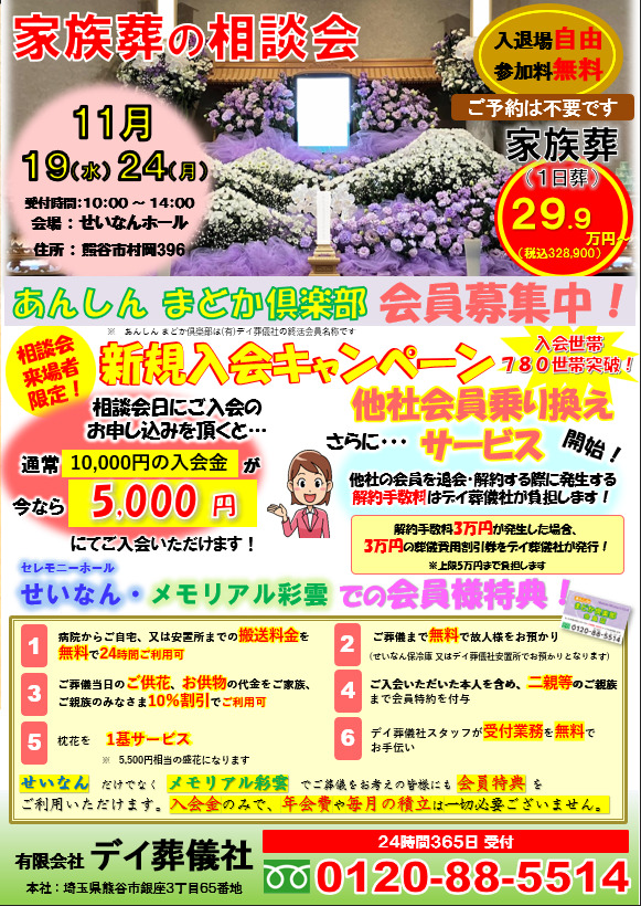場  所 セレモニーホール せいなん 熊谷市村岡396
